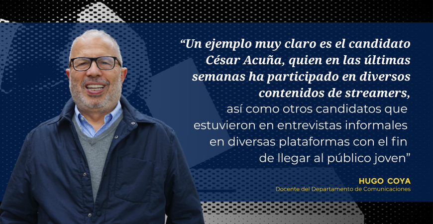 El periodista y docente Hugo Coya señaló que, en el actual proceso electoral, la presencia de las y los candidatos en redes sociales, especialmente en plataformas como Instagram y TikTok, tiene un papel central en las estrategias de comunicación política.