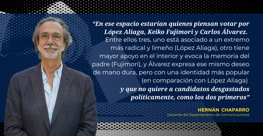 Respecto a los resultados electorales, el profesor Chaparro señaló que el voto está, a la vez, polarizado y fragmentado. Las personas que apoyan propuestas que solucionen la inseguridad ciudadana con “mano dura” y otras medidas vinculadas al populismo punitivo tienen una tendencia por los candidatos de derecha o centro derecha.