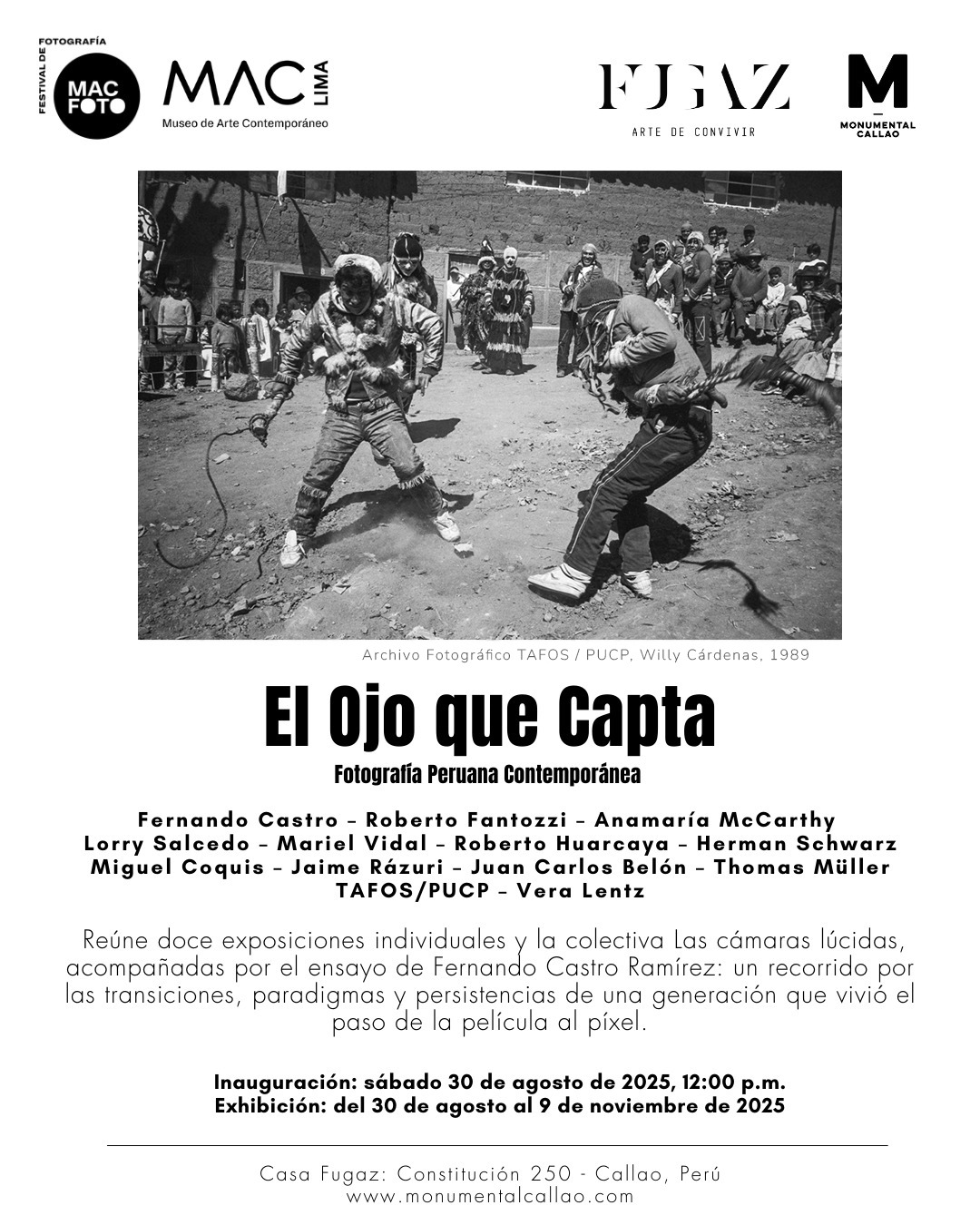Asimismo, el profesor Colunge participó como curador en la exposición fotográfica “TAFOS / PUCP”, presentada en el marco de la colectiva El Ojo que Capta. La muestra, disponible hasta el 9 de noviembre en Callao Monumental (Jr. Constitución 250), reúne fotografías del proyecto TAFOS junto con obras de estudiantes de los cursos Fotografía, Fotografía Documental y Fotoperiodismo, dictados por los docentes Susana Pastor y Ángel Colunge.